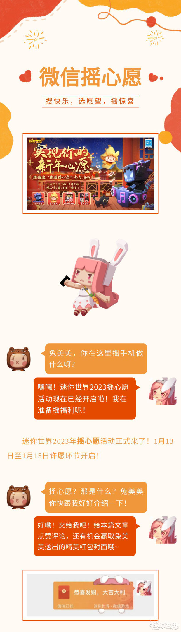 快来参与微信摇心愿活动,实现你的新年心愿! 快来参与微信摇心愿活动,实现你的新年心愿! 迷你世界款红包封面(数量有限!) 迷你连萌款红包封面(数量有限!) 分享到: Email a link to a friend(在新窗口中打开) 电子邮件 赞 正在加载…… 发布者:Mnsjtxy 查看 Mnsjtxy 发布的所有文章